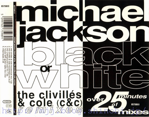 日本盤・8cmシングルCD マイケル・ジャクソン ブラック・オア・ホワイト ( 4988010708313 / カタログNo. ESDA 7083 ) 1991年11月21日リリース 税込み定価 ¥800 1. BLACK OR WHITE (3:23) 2. BLACK OR WHITE [Instrumental] (3:23) >> 続きを読む >> オススメ指数 (※2010年現在、中古盤を買う場合。管理人の独断でズバリ言うわよ調べ)収録内容充実度・・・★☆☆☆☆ ジャケ買い度・・・★★☆☆☆ レア度・・・★★★☆☆ 価格・・・? 多少レアではあるが、欲しがる人が少なそうなので、特別高値はつかないかと・・・ 総合点・・・★☆☆☆☆ 8cmコレクターの人に! この当時、オマケ要素が入って当たり前、のような「マキシシングル」というジャンルはまだあまり一般的ではなく、『BLACK OR WHITE』の日本盤シングルは、1曲+インスト・バージョンという、最軽量スタイルでキックオフです ![]() わぁ!2010年現在のアマゾン(日本)のカタログにも一応ちゃんと載ってました(笑)!ちなみに、アマゾン登録ジャケ写は、アメリカ盤のシングルだと思うんですが・・・(カスタマー画像の方が正しいですね)。8cm・・・レア度は未知数。 アメリカ盤・プロモ Michael Jackson BLACK OR WHITE ( 9870741002 / カタログNo. 34K 74100) 1991年11月リリース 非売品(プロモ) 1. BLACK OR WHITE (3:23) 2. BLACK OR WHITE [Instrumental] (3:23) (三つ折の紙ジャケ仕様。広げるとマイケルの目ヂカラ最強サイズに。) 収録内容はシンプルな単発シングルですが、ワクワクする『DANGEROUS』祭の幕開けにふさわしく、クールでゴージャスな特殊パッケージが特徴です。プロモ盤とは、一般発売に先駆けて、曲のPRのためにラジオ局などに配布される盤のことです。本来は非売品ですが(これもNOT FOR SALEシールが貼ってある)、中古市場では現在でも割と数量が豊富に流通していて、私は確か何かの拍子に1ドルくらいで買いました。プロモ盤のなかにはレア盤もありますが、これに関しては特にレア、ということではないと思います。ディスクのピクチャーデザインがめちゃめちゃカッコいいです。 オススメ指数収録内容充実度・・・★☆☆☆☆ ジャケ買い度・・・★★★★☆ レア度・・・★★☆☆☆ 価格・・・数ドル程度。米から日本まで送ってもらうとして、送料込で1000円以内なら、まぁいいかな?シビアに行こう。 総合点・・・★★☆☆☆ パッケージの個性と、記念品的な意味合いで。 お次、いよいよ大盛り定食が・・・ オーストリア盤(UK・ヨーロッパで流通) Michael Jackson BLACK OR WHITE - the clivilles & cole remixes ( 5099765759891 / カタログNo. 657598 9 ) 1992年1月リリース 定価 1000円前後? 1. BLACK OR WHITE [the Clivilles & Cole House/Club Mix] (7:33) 2. BLACK OR WHITE [the Clivilles & Cole House/Dub Mix] (6:27) 3. BLACK OR WHITE [the Underground Club Mix] (7:30) 4. BLACK OR WHITE [House With Guitar Radio Mix] (3:53) 5. BLACK OR WHITE [Tribal Beats] (3:34) こちらは、アルバム『DANGEROUS』が全世界でリリースになった後に出た、リミックス・ミニアルバムのような位置づけの1枚です。このあたりから、ようやく、マキシシングル図鑑!って感じです。アートワークが、他と比べて、なぜか非常~にそっけなく、「これ、正規盤?」と思ってしまいそうなくらいですが、ちゃんとEPIC・MJJ印の正規盤です、ご安心を。収録トラックも良いです。 リミックスを手がけているのは、C&Cミュージック・ファクトリー。時代を感じます。 オススメ指数収録内容充実度・・・★★★★☆ ジャケ買い度・・・★☆☆☆☆ レア度・・・★★★☆☆ 価格・・・定価か、それよりちょっと高めに推移。プレミアとまでは言えないけれど、まぁまぁ高い人気が伺える。 総合点・・・★★★★☆ ポップでダンサブル、内容は文句なく良いので、機会があればぜひ。 というわけで、『BLACK OR WHITE』の、全・公式ミックスは、以下。 Album Version ![]() Single Version ![]() Instrumental Version ![]() The Clivillés & Cole House/Club Mix ![]() The Clivillés & Cole House/Dub Mix ![]() ![]() The Clivillés & Cole Radio Mix ![]() The Underground Club Mix ![]() ![]() House With Guitar Radio Mix ![]() ![]() Tribal Beats ![]() のミックスが、アルバム『DANGEROUS』及び、上で紹介しているシングルCDでコレクトできたトラックです。残るは1トラックのみ。 のミックスは、『REMEMBER THE TIME』のアメリカ盤(49K 74201)にも収録なので、それがあれば、コンプリートです